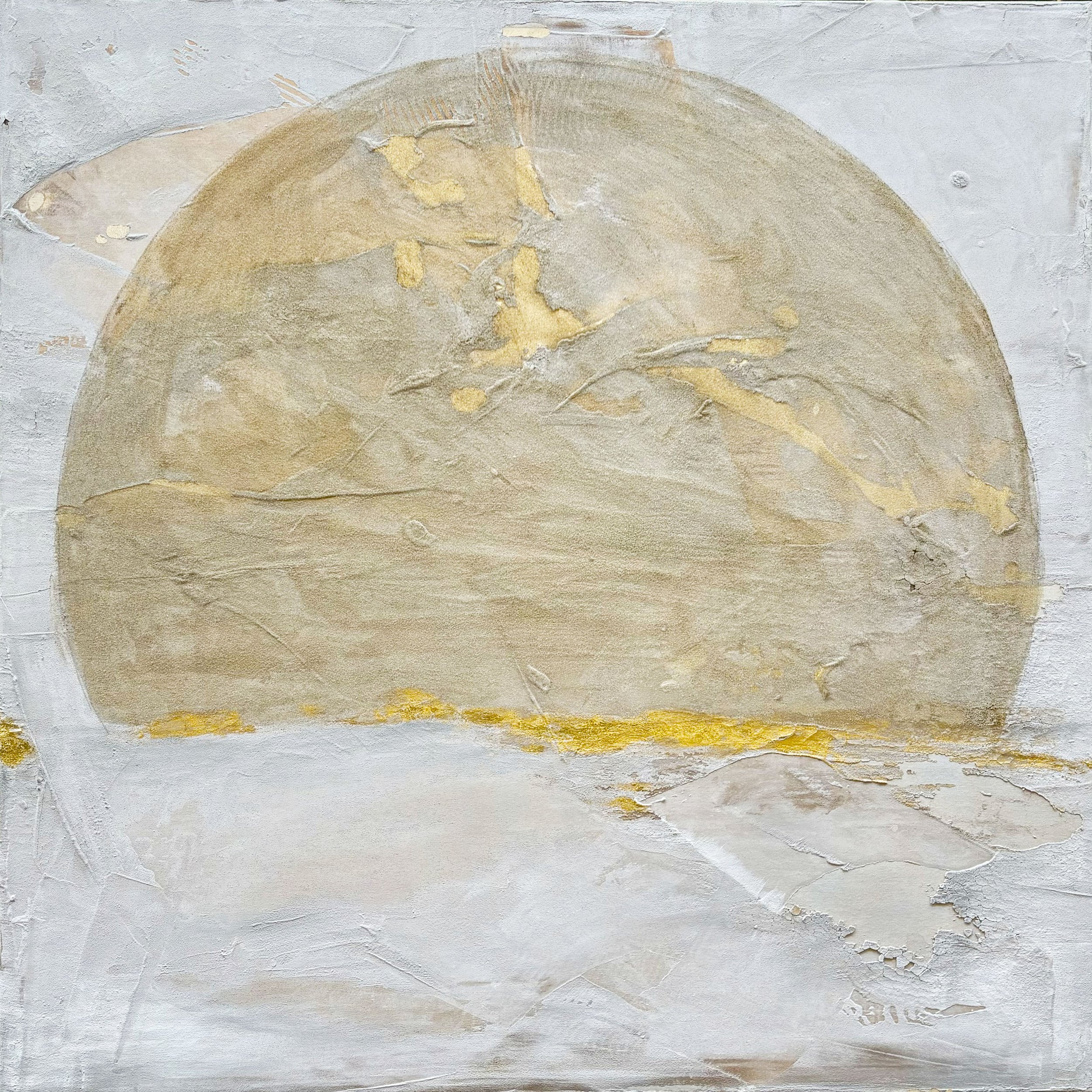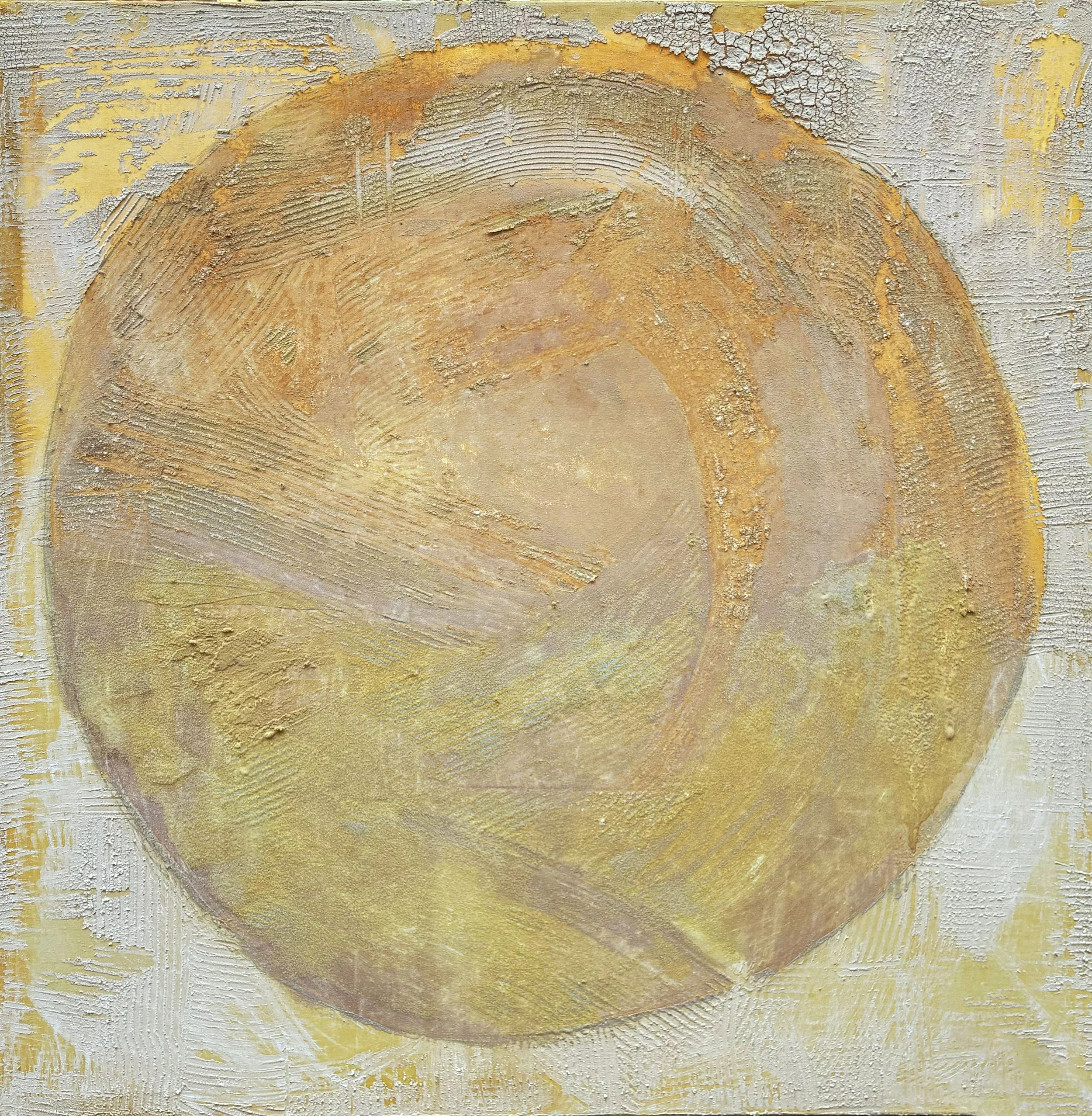OBJECTS IN SPACE – QUARTA LUNA | Objects in Space: Song by La Dispute | MIXED MEDIA: PIGMENTE, GOUACHE, MARMORMEHL, KREIDE, MUSKATNUSS, NELKE, ECHTES BLATTGOLD, GLASPARTIKEL | FORMAT: 100 x 100 CM