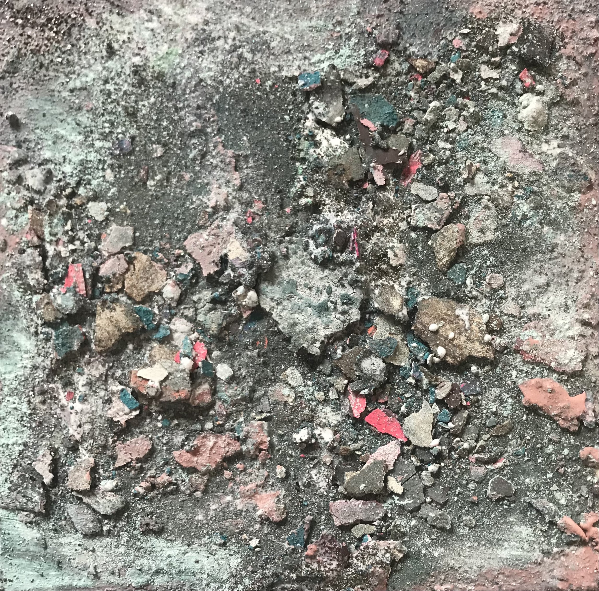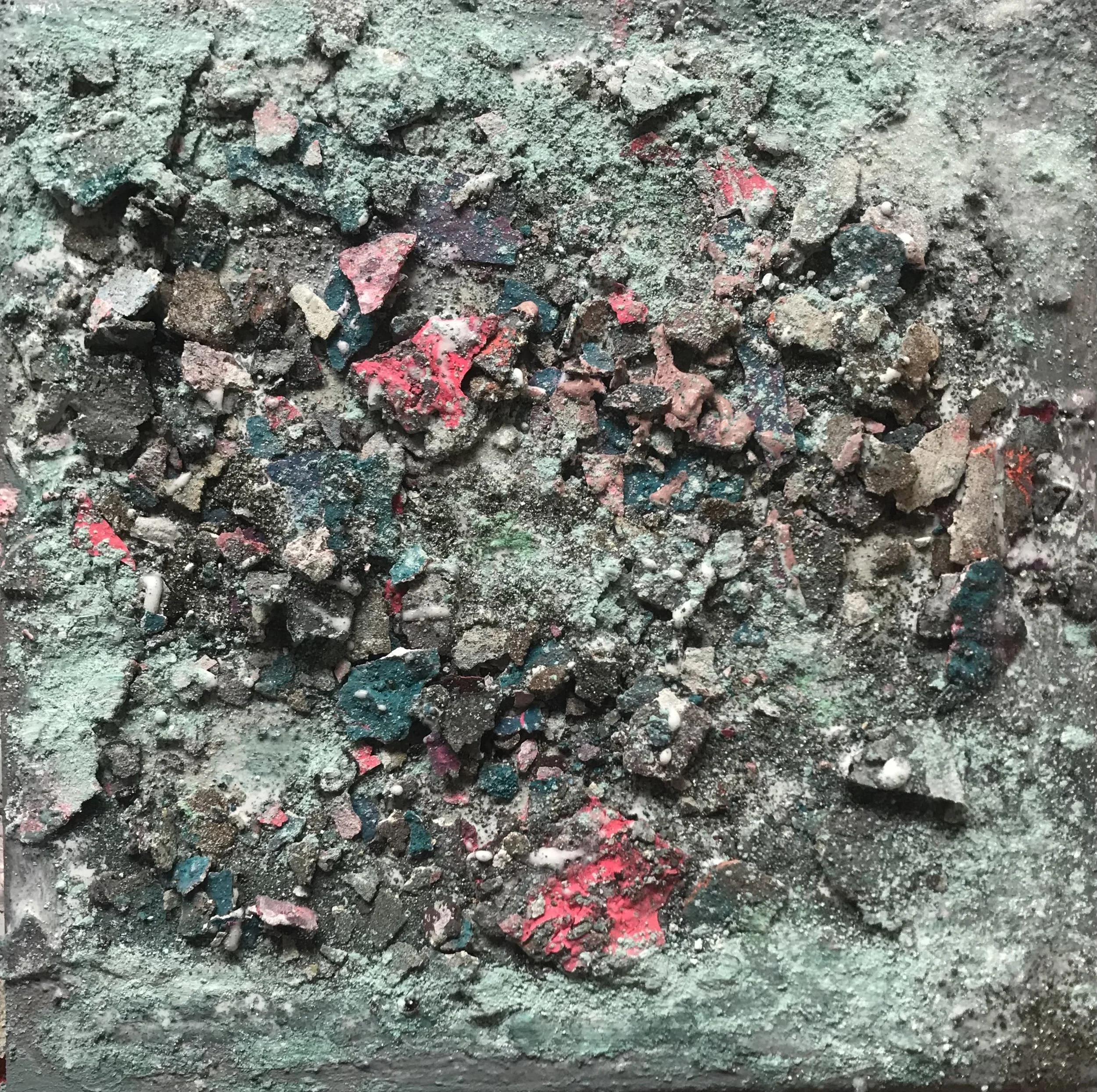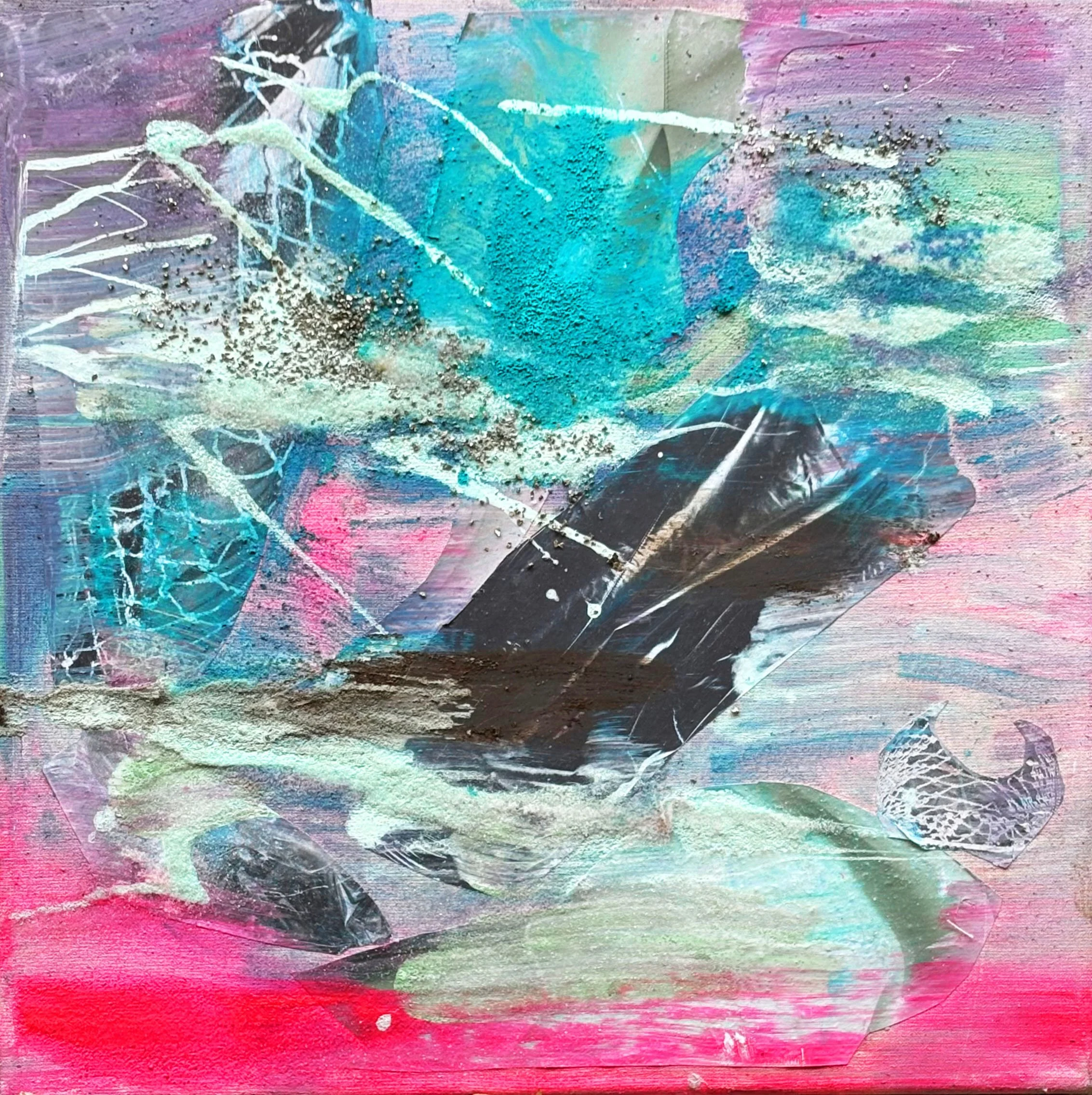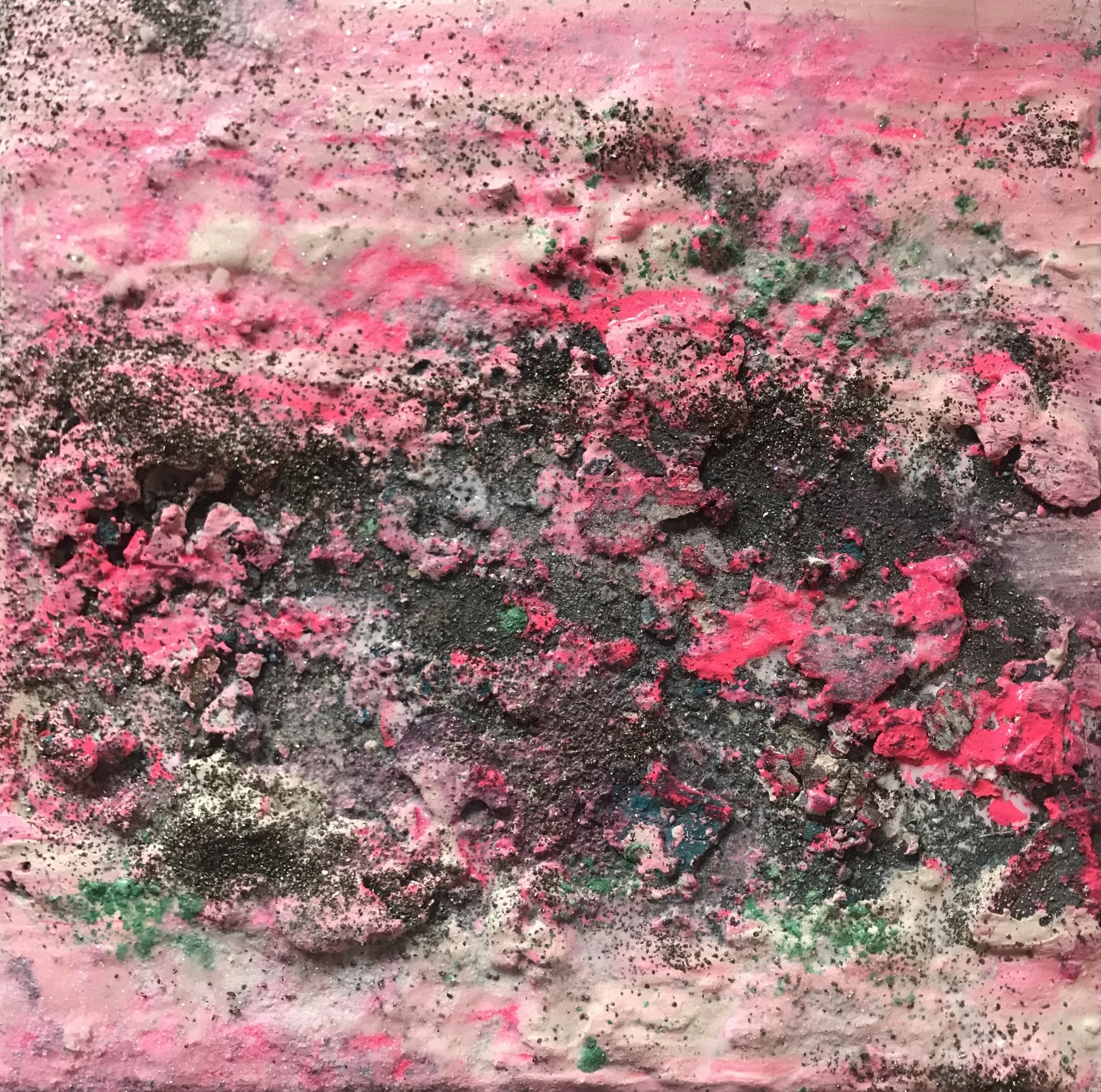 OBJECTS IN SPACE | …BUT I GUESS THEN CAME A DEPARTURE II | Lyrics by La Dispute | MIXED MEDIA: PIGMENTE, LAVENDEL, ANIS, SALZ, GLASPARTIKEL | 30 x 30 CM