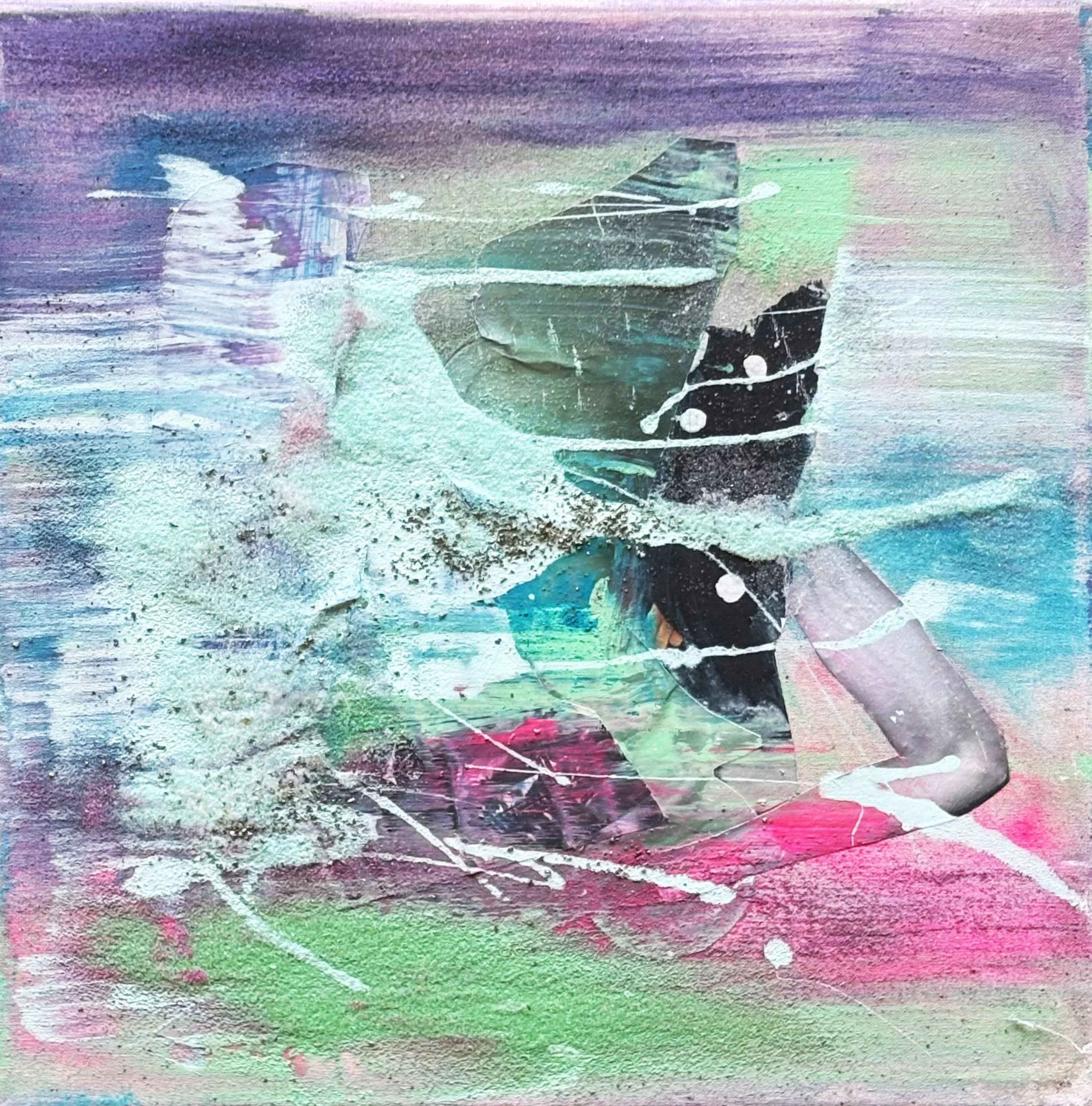 PAINT IT THE SHADE OF WHERE THE LIP BLEEDS AND BLUR IT OUT II | Lyrics by La Dispute | MIXED MEDIA: PIGMENTE, GOUACHE, COLLAGE, PYRIT | FORMAT: 30 x 30 CM
