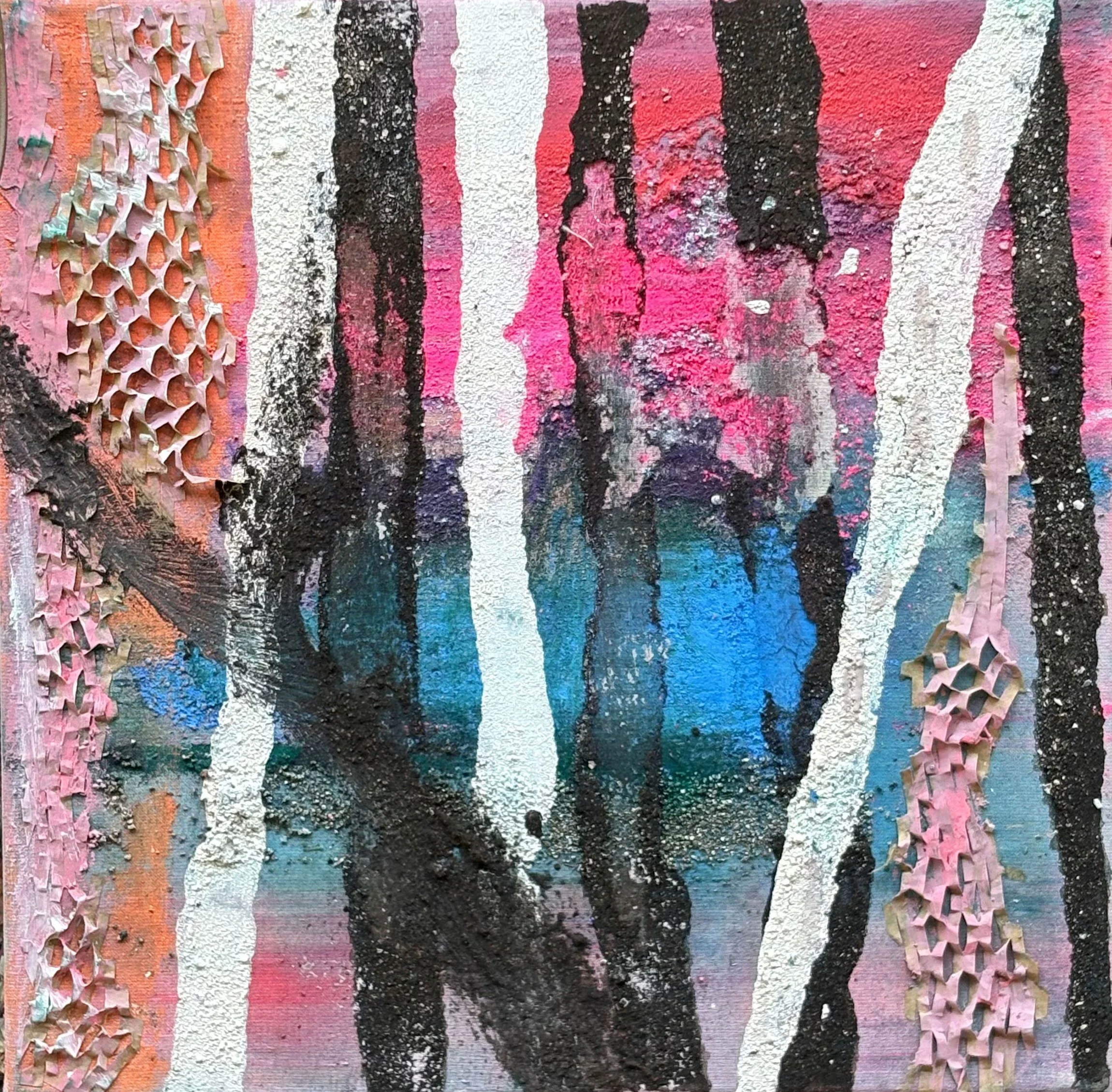 WE ARE NOT OUR LOSSES, WE ARE ONLY THE EXTENT TO WHICH WE LOVE II | 2025 | Lyrics by La Dispute | MIXED MEDIA: PIGMENTE, GOUACHE, KREIDE, MARMORMEHL, COLLAGE | FORMAT: 30 x 30 CM
